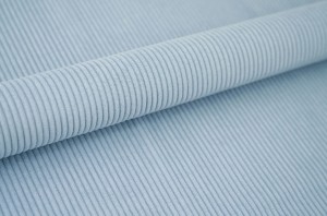 Cord 205.01 baby blue to modna tkanina obiciowa o pastelowym odcieniu niebieskiego i wyraźnej strukturze prążków. Idealna do jasnych, nowoczesnych wnętrz.