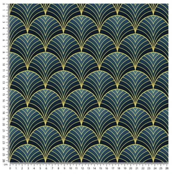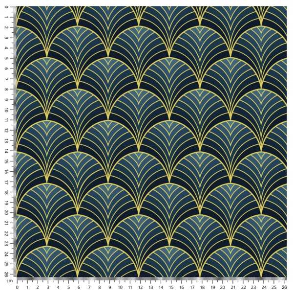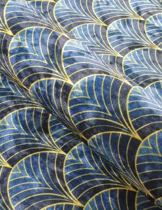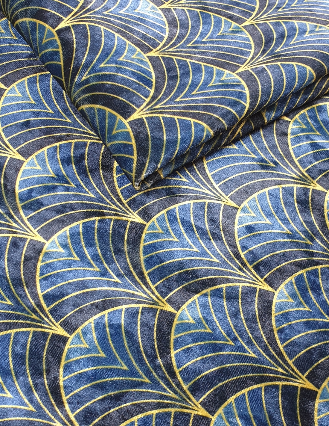 Tkanina w złote wachlarze na granatowym tle 02 CRUSH VELVET